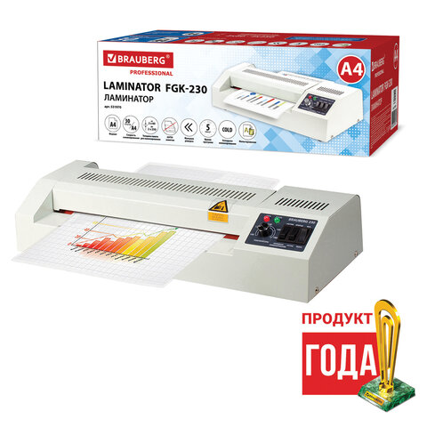 Ламинатор BRAUBERG FGK-230, формат А4, толщина пленки 1 сторона 60-250 мкм, скорость 51 см/мин., 531970