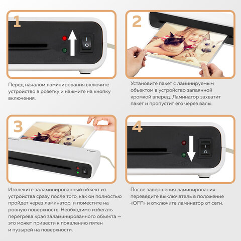 Ламинатор BRAUBERG идеально подходит для использования как в офисе, так и дома. Предназначен для ламинирования документов, меню, рисунков, фотографий и т.д.