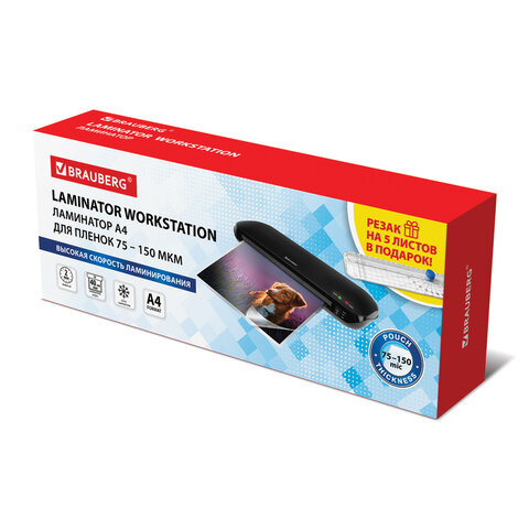 Ламинатор с резаком роликовым А4 BRAUBERG WORKSTATION, толщина пленки 75-150 мкм, 532623