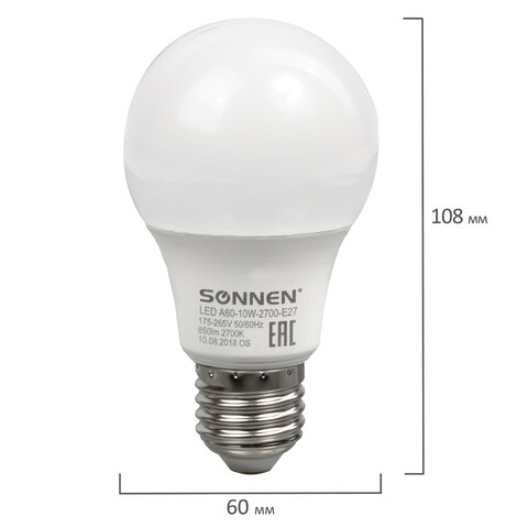 Светодиодная лампа SONNEN компактного размера. Срок службы лампы составляет не менее 30000 часов, что примерно в 30 раз больше, чем у обычной лампы накаливания.