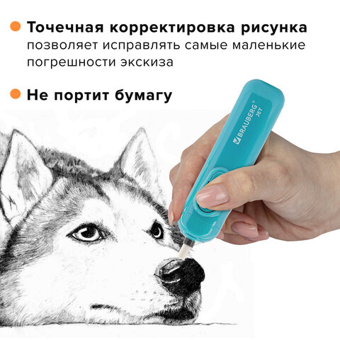 Электрический ластик BRAUBERG "JET" идеален для корректировки чертежа, эскиза или скетча без каких-либо усилий и не причиняя вреда бумаге.
