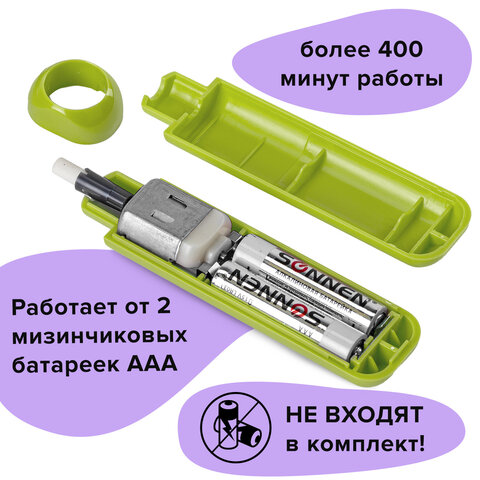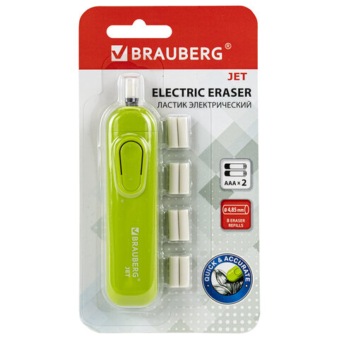 Ластик электрический BRAUBERG JET, питание от 2 батареек ААА, 8 сменных ластиков, салатовый, 229615