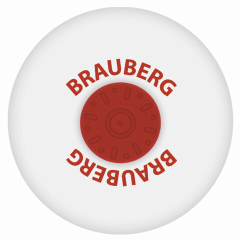 Ластик BRAUBERG "Universal", 30х30х8 мм, белый, круглый, красный пластиковый держатель, 222472