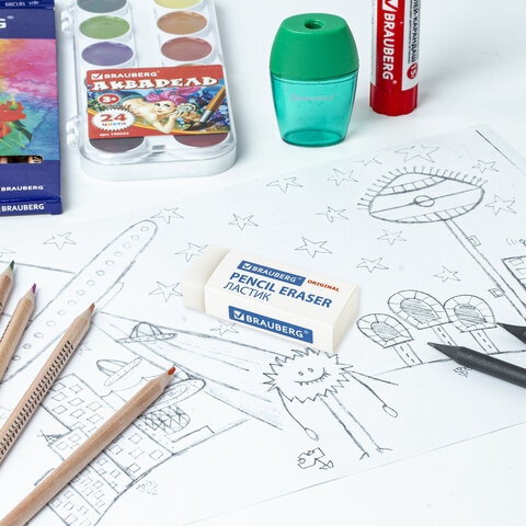 Ластик BRAUBERG предназначен для удаления надписей, сделанных чернографитным карандашом.
