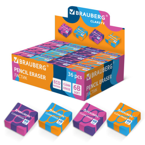 Ластик BRAUBERG "CLARITY" предназначен для удаления надписей, сделанных чернографитным карандашом.