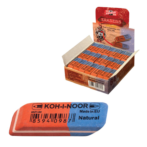 Ластик KOH-I-NOOR 6521/80, 42х14х8 мм, красно-синий, прямоугольный, скошенные края, натуральный каучук, 6521080006KDRU