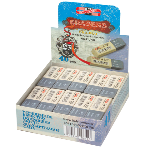 Ластик KOH-I-NOOR 6541/40, 57x19,5x8 мм, бело-серый, прямоугольный, скошенные края, натуральный каучук, 6541040007KDRU