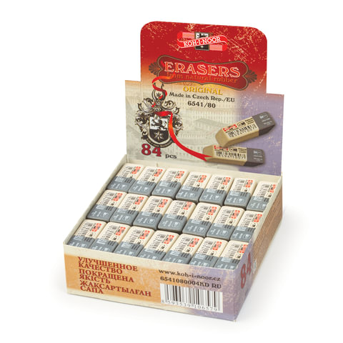Ластик KOH-I-NOOR 6541/80, 41x14x8 мм, бело-серый, прямоугольный, скошенные края, натуральный каучук, 6541080004KDRU