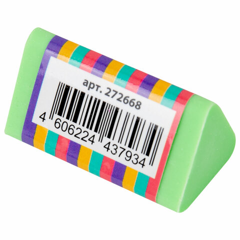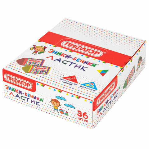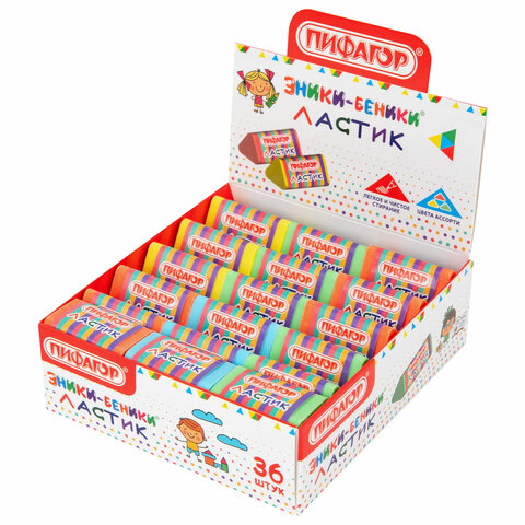 Ластик трехгранный ПИФАГОР "ЭНИКИ-БЕНИКИ", 35х18х18 мм, картонный держатель, цвета ассорти, 272668