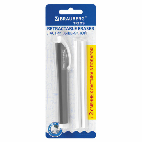 Ластик выдвижной + 2 сменных ластика BRAUBERG "TRIOS", 124х12х12 мм, графитовый корпус, 272692