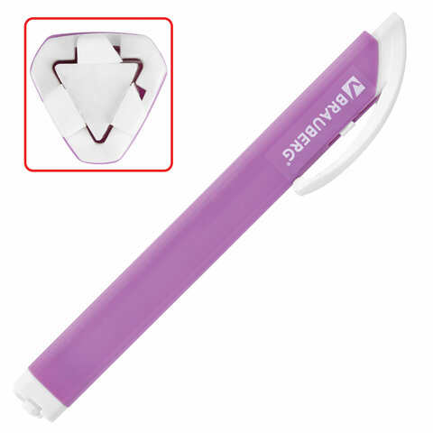 Ластик выдвижной + 2 сменных ластика BRAUBERG "TRIOS", 124х12х12 мм, лавандовый корпус, 272691