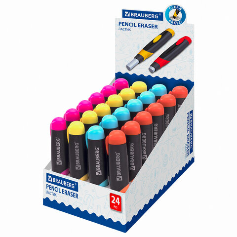 Выдвижной ластик BRAUBERG "Rewind" предназначен для удаления надписей, сделанных чернографитными карандашами.