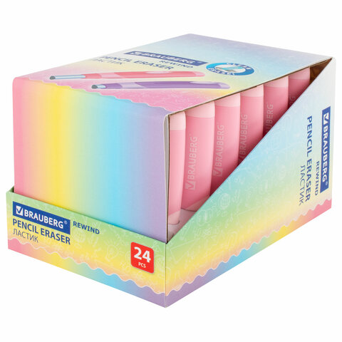 Выдвижной ластик BRAUBERG "REWIND" предназначен для удаления надписей, сделанных чернографитными карандашами.