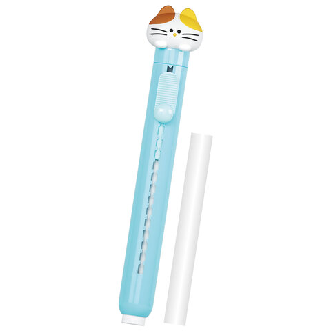 Ластик выдвижной с топпером + 1 сменный ластик, FUNSTER (ФАНСТЕР) "КОТЁНОК", 125х12х12 мм, белый, голубой держатель, блистер, 274021
