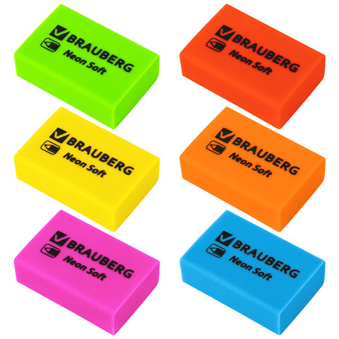 Ластики BRAUBERG NEON SOFT выполнены в неоновых цветах и предназначены для удаления надписей, сделанных чернографитным карандашом.