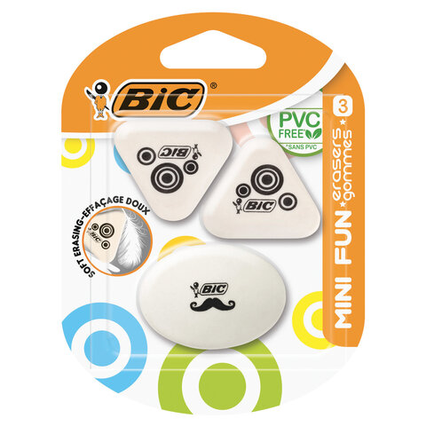 Набор ластиков BIC, "Mini Fun" 3 шт., белый с рисунком, 2 треугольных и 1 овальный, 927870