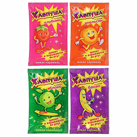Леденцы-хлопушки "ХЛОПУША" – это оригинальное и необычное лакомство, которое порадует сладкоежек и маленьких исследователей. Как только карамель касается языка, она начинает весело хлопать и шипеть.