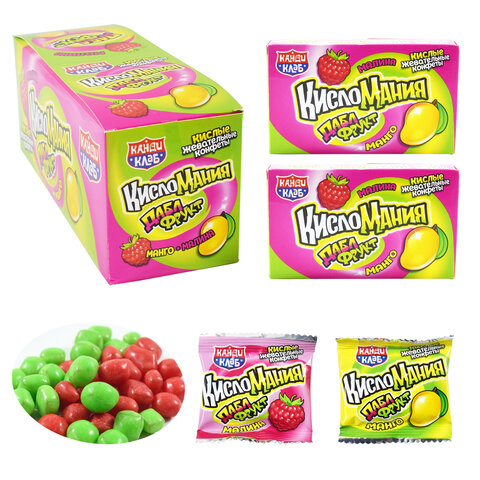 Жевательные конфеты "Кисломания дабл фрукт" малина и манго, 14 г, КАНДИ КЛАБ, CHW042-3