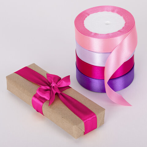 Лента атласная ширина 25 мм, набор №3 4 цвета по 23 м, BRAUBERG, 591503