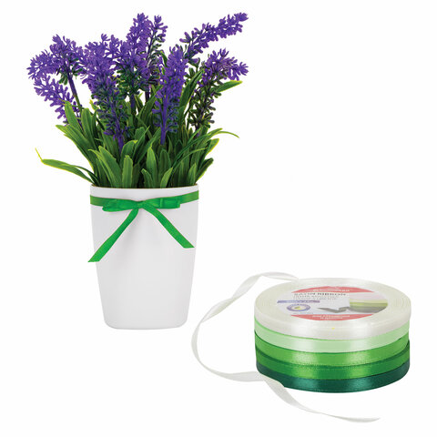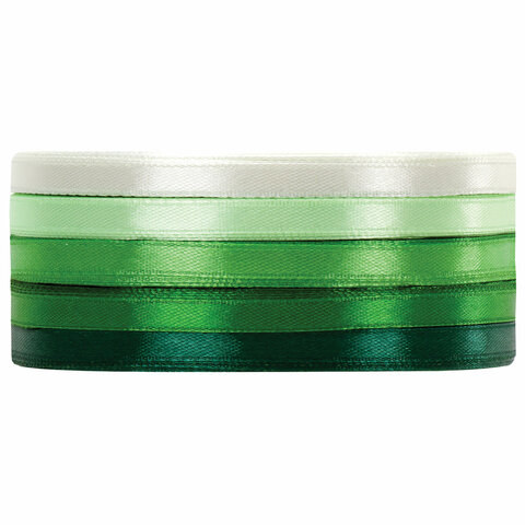 Лента атласная ширина 6 мм, ЗЕЛЕНЫЙ СПЕКТР набор 5 цветов по 23 м, BRAUBERG, 591493