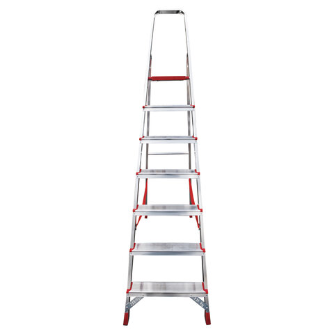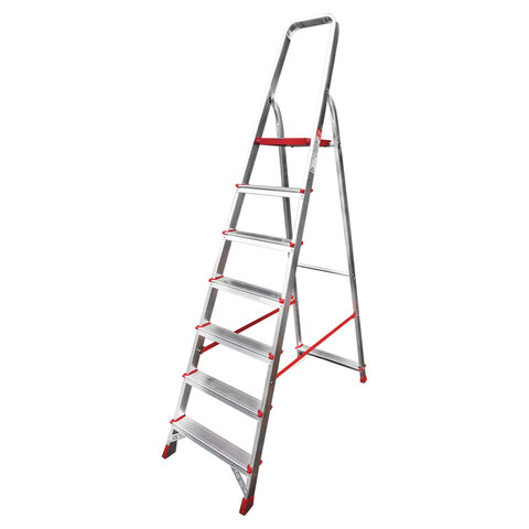 Стремянка алюминиевая 7 стандартных ступеней 9 см, площадка 1,5 м, нагрузка 225 кг, вес 7 кг, НОВАЯ ВЫСОТА, 3110107