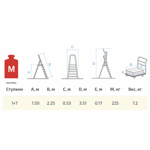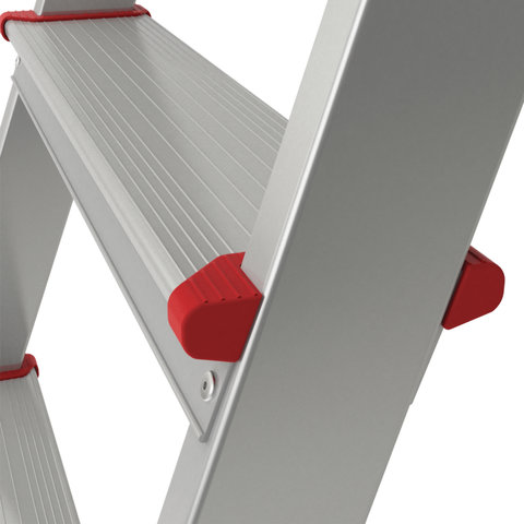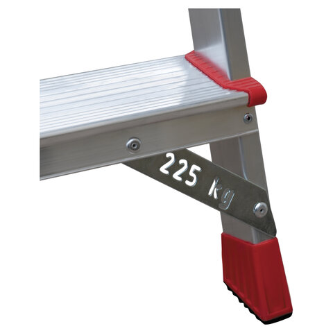 Лестница имеет повышенную прочность и надёжность при небольшом весе изделия, легко устанавливается и обеспечивает высокий уровень комфорта. Ступени данной модели стандартные. Увеличенная нагрузка на ступени 225 кг.