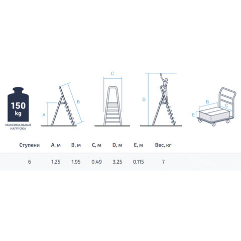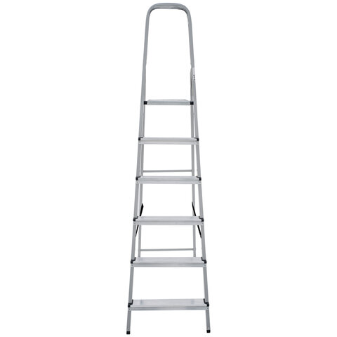 Стремянка сталь / алюминий 6 ступени, высота площадки 1,25м, дуга 0,6м, площадка 26х26см, нагрузка 150кг, вес 7кг НОВАЯ ВЫСОТА, 1130106