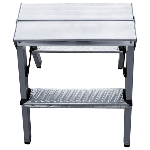 Стремянка стальная двухсторонняя 2х2 ступени, высота площадки 0,44м, алюминиевая площадка 35х16см, до 150кг, вес 2,8кг НОВАЯ ВЫСОТА, 1160202