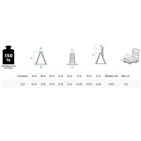 Стремянка имеет повышенную прочность и надёжность при небольшом весе изделия. Обеспечивает высокий уровень комфорта.