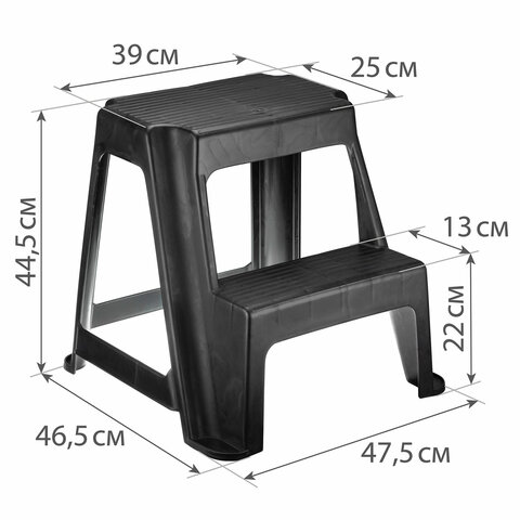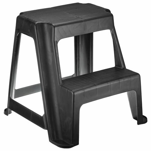 Стремянка-табурет, 2 ступени, стационарная, пластиковая, нагрузка 120 кг, вес 2,4 кг, черная, IDEA, М 2296