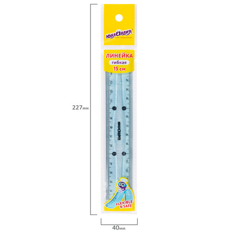 Линейка 15 см гибкая ЮНЛАНДИЯ "FLEX", пластиковая, тонированная, голубая, 210757