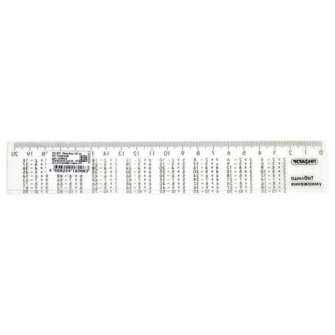 Линейка пластик 20 см, ПИФАГОР, справочная, таблица умножения, 210616