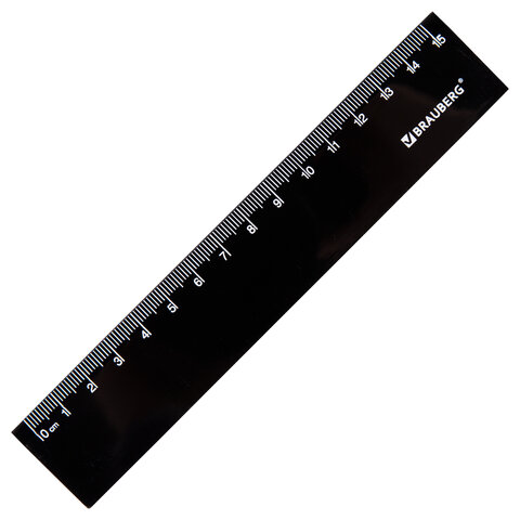Линейка пластиковая 15 см, BRAUBERG, черная, пакет, 210774