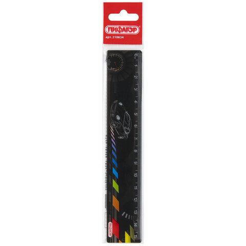 Линейка пластиковая 15 см, ПИФАГОР "Авто", цветная печать, с волнистым краем, европодвес, 210634
