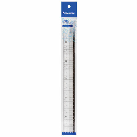 Линейка пластиковая 30 см BRAUBERG, прозрачная, черно-белая печать, европодвес, 210743