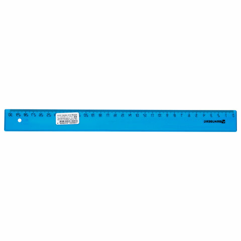 Линейка пластиковая 30 см, BRAUBERG, прозрачная, тонированная, 210610