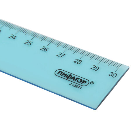 Линейка пластиковая 30 см, ПИФАГОР, прозрачная, тонированная, 210841