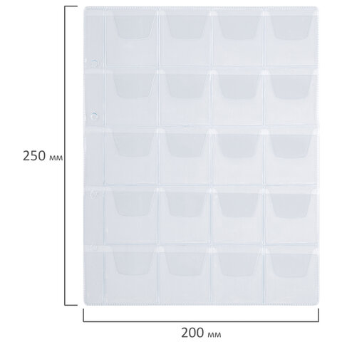Листы-вкладыши для альбома "OPTIMA" на 20 монет d до 40 мм, КОМПЛЕКТ 10 шт., 200х250 мм, ПВХ, STAFF, 238083