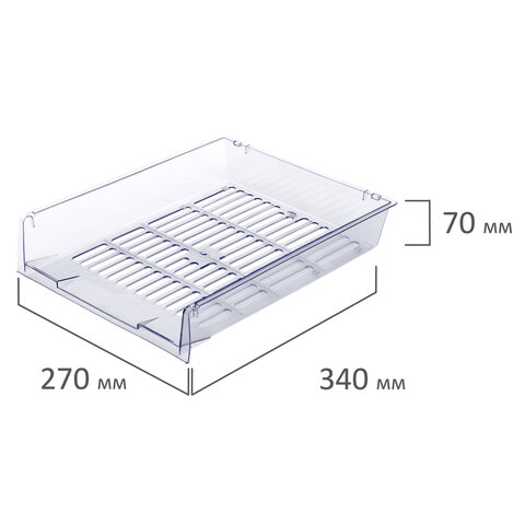 Лотки горизонтальные для бумаг, КОМПЛЕКТ 3 шт., 340х270х70 мм, прозрачный, BRAUBERG "Office", 237258