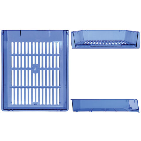 Лотки горизонтальные для бумаг, КОМПЛЕКТ 3 шт., 340х270х70 мм, тонированный синий, BRAUBERG "Office", 237259