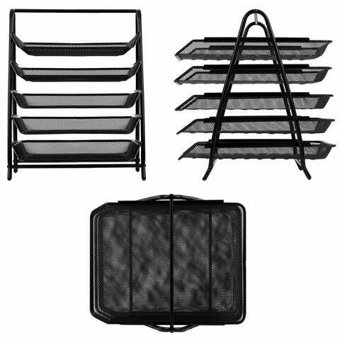 Лоток горизонтальный для бумаг BRAUBERG "Germanium", 5 секций, 370х355х295 мм, металл, черный, 237971