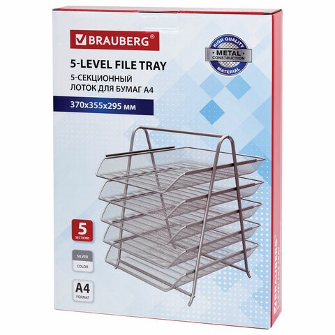 Лоток горизонтальный для бумаг BRAUBERG "Germanium", 5 секций, 370х355х295 мм, металл, серебро, 237972