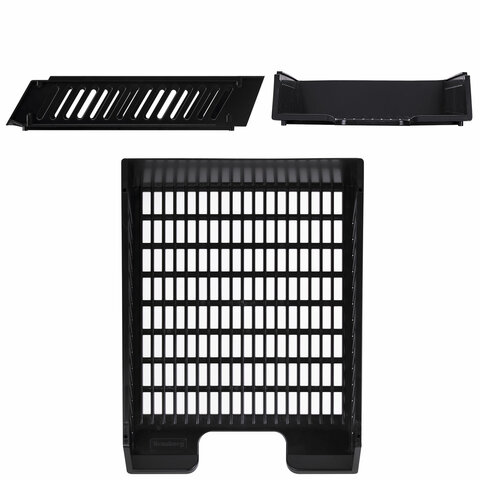 Лоток горизонтальный для бумаг BRAUBERG-MAXI, с пазами, А4 (358х272х69 мм), сетчатый, черный, 231141