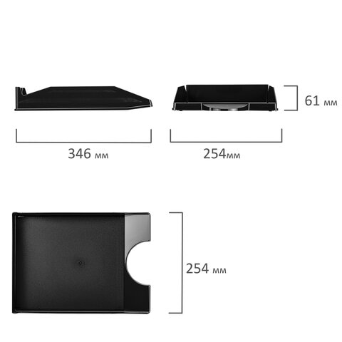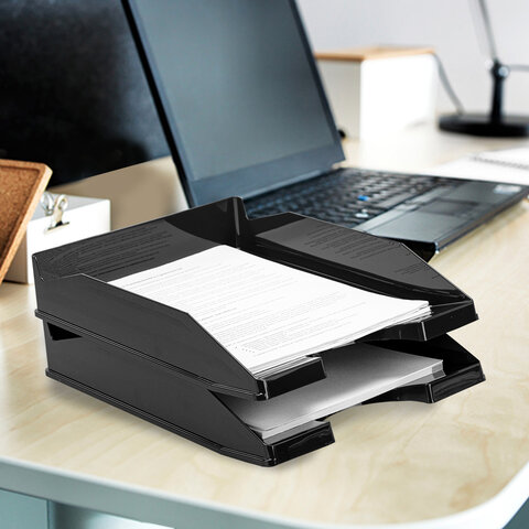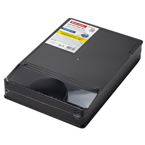 Лоток горизонтальный для бумаг КОМПЛЕКТ 2 шт., BRAUBERG "Modern", 346х254х61 мм, черный, 238024
