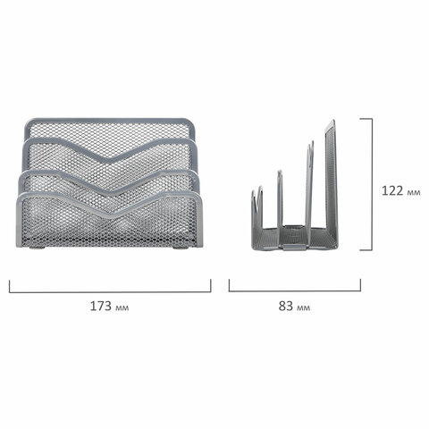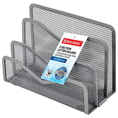 Подставка для сортировки писем и бумаг 3-х секционная BRAUBERG "Germanium", 122х173х83 мм, серебро, 237970