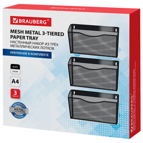 Настенный набор из 3-х металлических лотков BRAUBERG "Germanium" предназначен для удобного хранения журналов, проспектов, каталогов и прочей бумажной продукции формата А4.