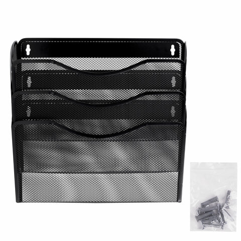 Лотки для бумаг настенные 3 штуки, формат А4, BRAUBERG "Germanium", черные, 237968