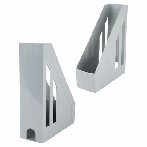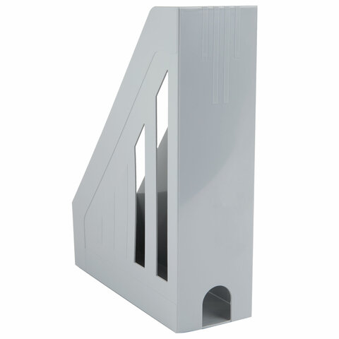 Лоток вертикальный для бумаг BRAUBERG "Contract" (260х85х300 мм), отверстия на торцах, серый, 230887