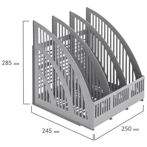 Лоток вертикальный для бумаг BRAUBERG "Energy", 250 мм, 3 отделения, сетчатый, сборный, серый, 237018
