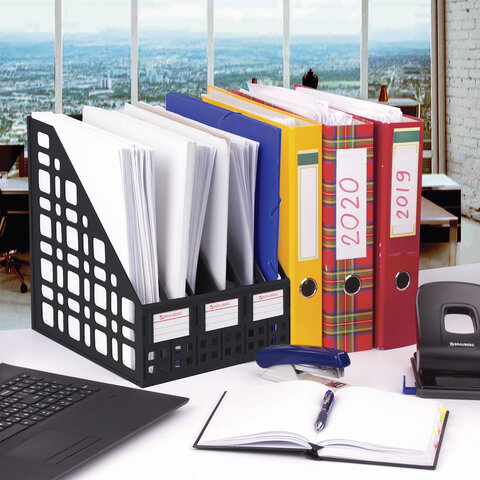 Супер вместительный вертикальный лоток BRAUBERG "MAXI-plus" для хранения каталогов и папок позволит поддержать порядок на рабочем месте и сэкономит пространство на столе и в шкафу.